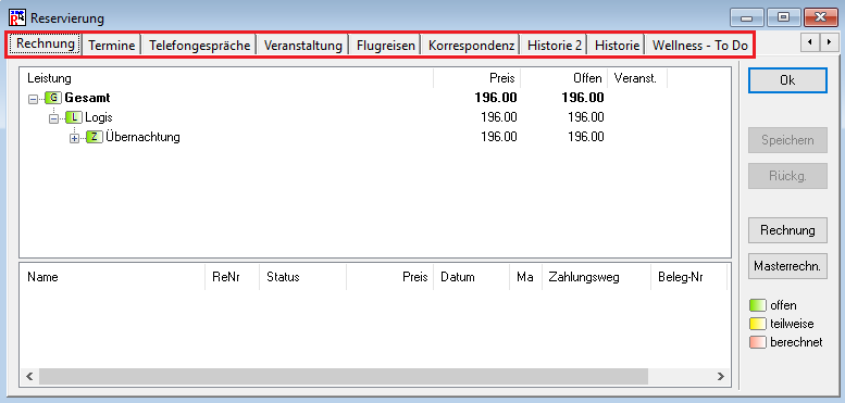 - wenn sich am heutigen Tag eine Reservierung auf dem Zimmer befindet, wird diese geöffnet