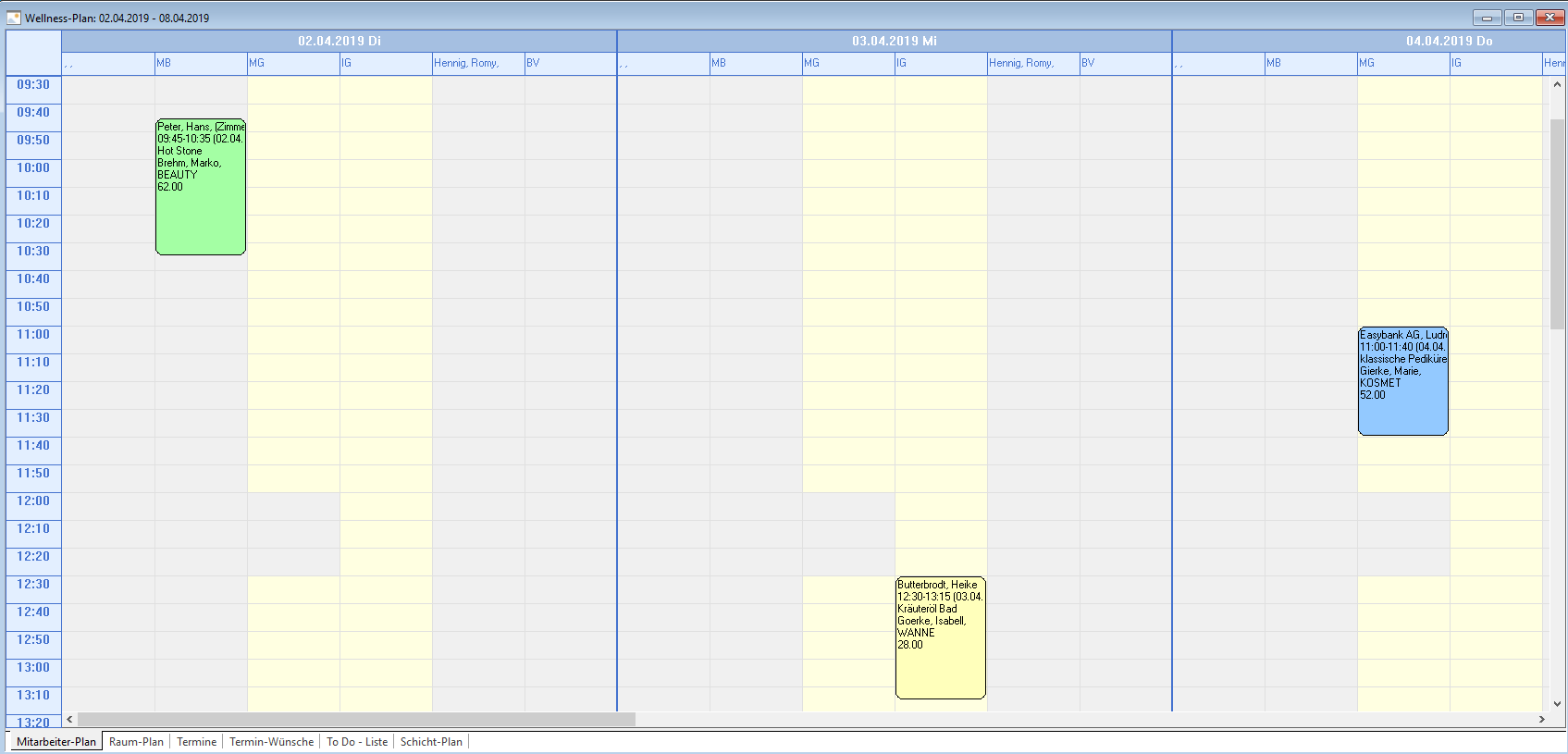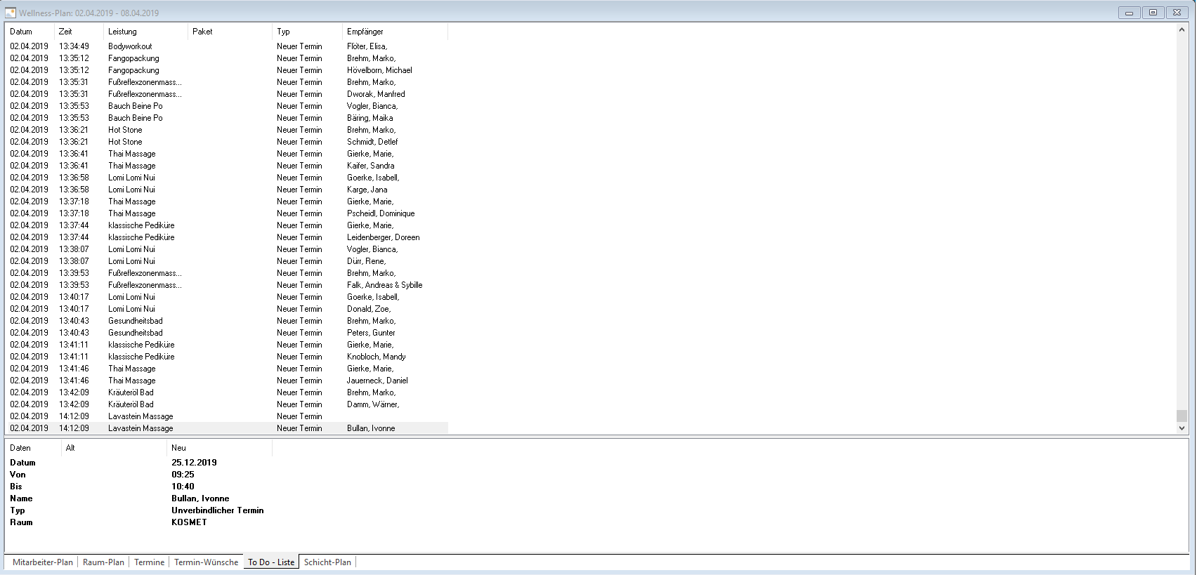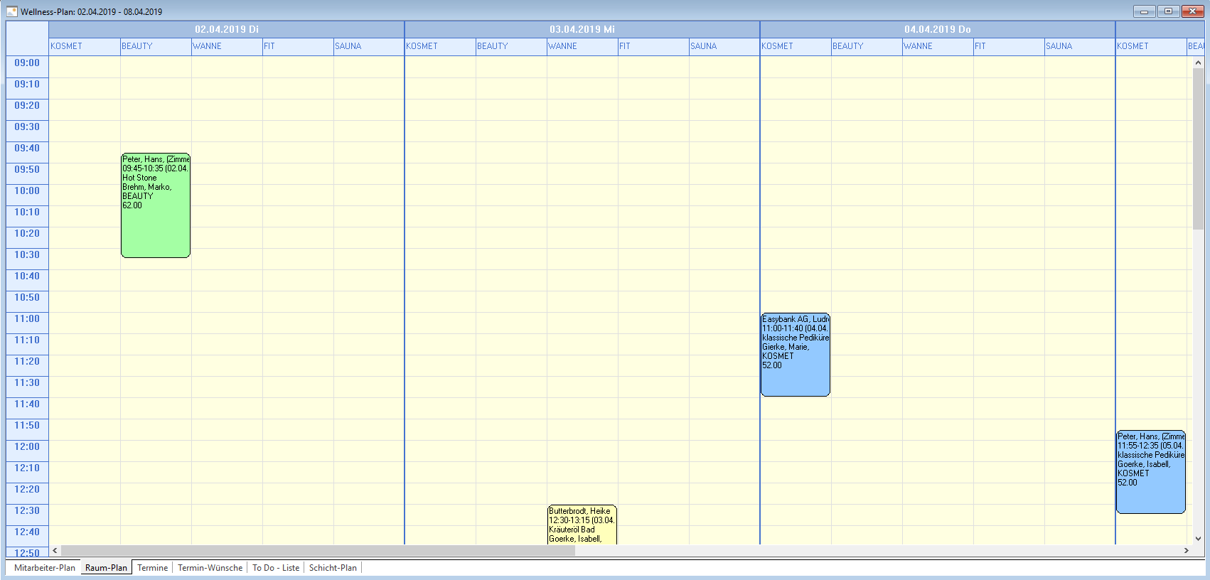 oder per Menü Rezeption -> Wellness-Plan