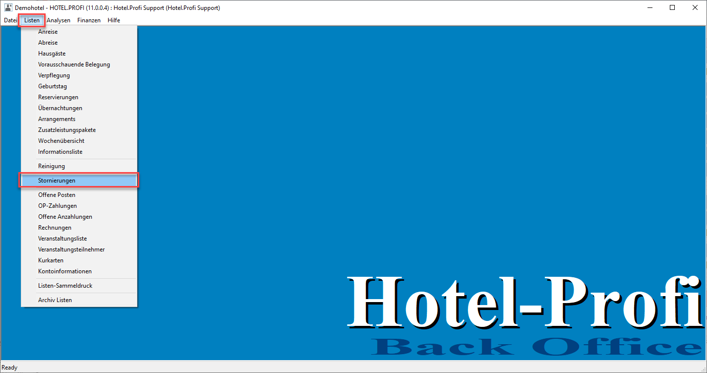 - um Stornierungen aufzulisten öffnen Sie "Hotel.Profi(BackOffice)"