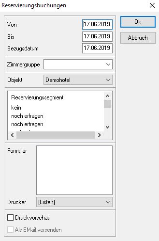 3. Wählen Sie ihren gewünschten Zeitraum, in dem Sie die Reservierungsbuchungen einsehen wollen und drucken Sie wenn gewollt die Reservierungsanalyse aus.