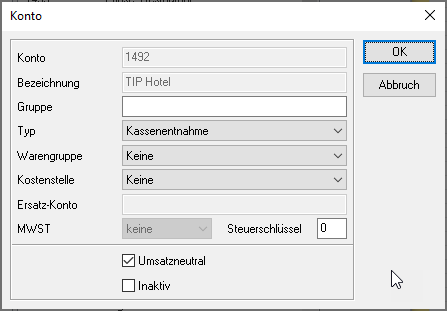 Haben Sie bei einem Konto die falsche MWST Stufe angegeben, so ist diese bei diesem Konto nicht mehr änderbar! In diesem Fall werden Sie ein neues Konto mit neuen Einstellungen anlegen müssen.