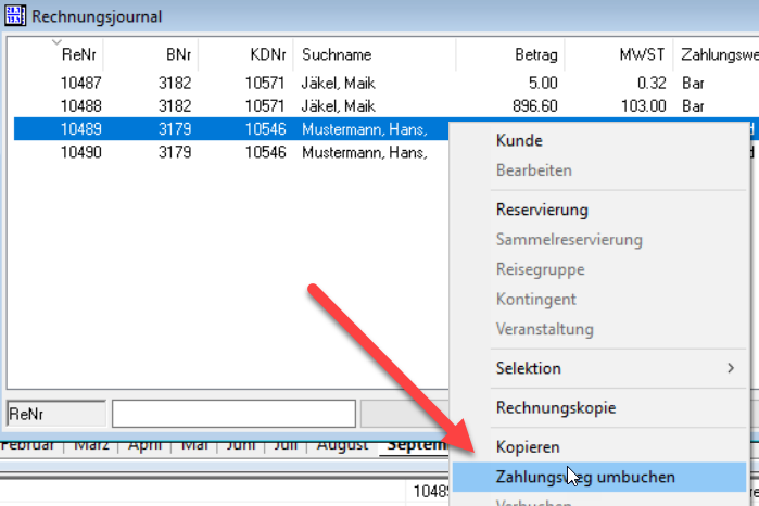 - Zahlungsweg einer verbuchten Rechnung umbuchen: