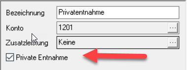 - Entnahmen, die eine Privatentnahme darstellen, müssen über die Option "Private Entnahme" gekennzeichnet werden