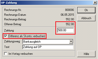 - der Differenzbetrag wird als Skonto verbucht
