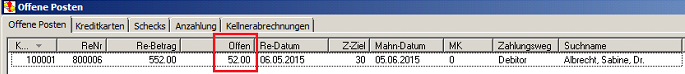 - verbleibt der Restbetrag als offener Posten im System