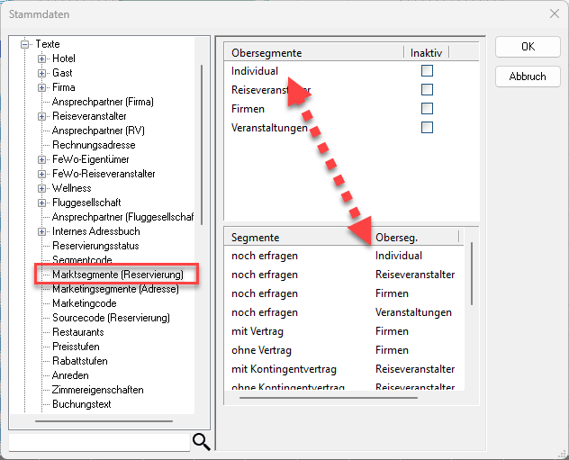 Datei>Stammdaten>Allgemeine Stammdaten>Texte > Marktsegment (Reservierung)